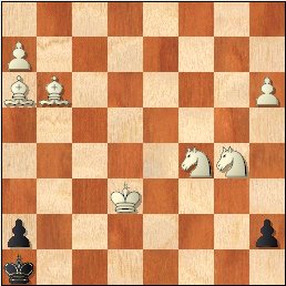 El visitante jugó 2…Rb8 y tras 3.h7 Ra8 4.h8=D James dio jaque mate simultaneo a los tres reyes negros.