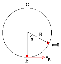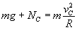 Ahora bien, si la velocidad de la partícula en la posición C es inferior a un valor mínimo, no describirá el bucle. De las ecuaciones de la dinámica del movimiento circular tenemos que Siendo NC la fuerza normal en C, o fuerza que ejerce el raíl sobre la partícula en dicha posición. La velocidad mínima se obtiene cuando NC=0.