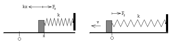 Si la máxima compresión del muelle es x0, la partícula se moverá si kx0> μmg, en caso contrario, permanecerá en equilibrio en dicha posición. La ecuación del movimiento es La solución de esta ecuación diferencial es x=Asen(ωt)+Bcos(ωt)+μg/ω2 Las constantes A y B se determinan a partir de las condiciones iniciales: en el instante t=0, x=x0 y dx/dt=0 Pueden ocurrir dos casos: 1.-Que la partícula se detenga antes de alcanzar el origen 2.-Que la partícula alcance el origen x=0, con velocidad final v La partícula se detiene en el instante t=π/ω, su posición es Para que sobrepase el origen se tiene que cumplir que x0>2μg/ω2 Llegamos a la misma conclusión desde el punto de vista energético. Solamente si la energía almacenada en el muelle es superior al trabajo de la fuerza de rozamiento, la partícula sobrepasa el origen La velocidad con la que llega al origen x=0 es El mismo resultado que se obtiene aplicando el balance energético: El trabajo de la fuerza de rozamiento es igual a diferencia entre la energía final y la energía inicial