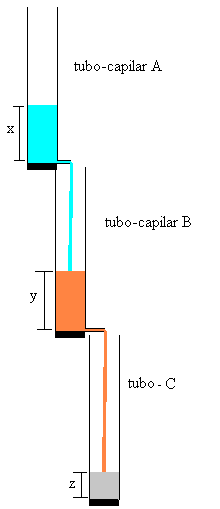 Fundamentos físicosLas ecuaciones que describen la variación de las respectivas columnas de fluido en función del tiempo son las siguientes: (véase las dos páginas anteriores: descarga de un tubo-capilar y carga y descarga de un tubo-capilar). Velocidades de variación de la altura de columna de fluido en los tres tubos: