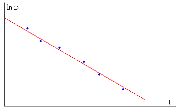 Se le proporciona al disco una velocidad angular inicial ω0, se mide la velocidad angular ω en función del tiempo t, representándose en el eje vertical el logaritmo neperiano de la velocidad angular, ln(ω) y en el eje horizontal el tiempo t. Se obtiene una recta. A partir de la pendiente de la recta, calculamos la viscosidad del gas.