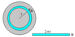 Fundamentos físicosEl coeficiente de viscosidad está relacionado con la distribución de velocidades en las capas de fluido situadas entre dos superficies en movimiento relativo. Las velocidades de estas capas tienen que ser menores que la velocidad media de las moléculas del gas, que es mayor que 500 m/s a temperatura ambiente, 293ºK . Al estudiar el concepto de viscosidad, vimos que la fuerza por unidad de área era proporcional al gradiente de velocidad, la constante de proporcionalidad se denomina coeficiente de viscosidad h En un instante t, el disco gira con velocidad angular ω. Consideremos el gas contenido en la capa cilíndrica de radio r, espesor dr y altura h. El gas que está cerca de la placa horizontal tiene velocidad cero y el gas que está próximo al disco, lleva una velocidad angular ωr.