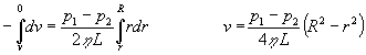 Sustituyendo F en la fórmula (1) y teniendo en cuenta que el área A de la capa es ahora el área lateral de un cilindro de longitud L y radio r. El signo negativo se debe a que v disminuye al aumentar r.