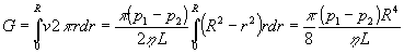 El gasto se hallará integrando El gasto G es inversamente proporcional a la viscosidad h y varía en proporción directa a la cuarta potencia del radio del tubo R, y es directamente proporcional al gradiente de presión a lo largo del tubo, es decir al cociente (p1-p2)/L. El gasto se puede expresar G=πR2<v>, donde <v> es la velocidad media del fluido