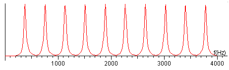 Midiendo la frecuencia fn de un determinado armónico n se puede obtener la velocidad del sonido vs, tal como hemos visto en la actividad anterior. El ruido tiene un espectro continuo de frecuencias, y el tubo actúa como un filtro que selecciona sus frecuencias de resonancia, tal como se aprecia en la figura.