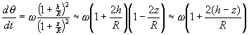 Como el momento angular se mantiene constante, tenemos la siguiente relación Siendo z la altura sobre la superficie del planeta r=R+z en el instante t. Teniendo en cuenta que h y z son mucho menores que R, tenemos la siguiente relación aproximada más simple Para poder integrar esta ecuación tenemos que buscar la dependencia de z con el tiempo t. Como z=h-gt2/2, donde g es la aceleración de la gravedad (supuesta constante) radialmente dirigida hacia el centro de la Tierra.