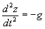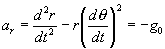 La aceleración de la gravedadUn tratamiento más exacto nos da un valor de g algo inferior al valor g0 de la aceleración de la gravedad. Para obtener z en función del tiempo tenemos que expresar la aceleración en coordenadas polares y considerar que la aceleración en la dirección radial ar en el sistema de referencia inercial es -g0, dirigida hacia el centro de la Tierra. El término que disminuye g0 es la aceleración centrífuga que es pequeña comparada con g0. Como r=R+z. tenemos Integrando la ecuación diferencial de segundo orden para un móvil que parte de la altura z=h con velocidad inicial nula en la dirección radial tenemos que. z=h-gt2/2