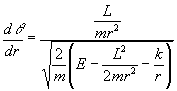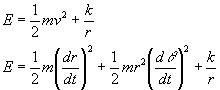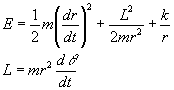 La energía y el momento angular en coordenadas polaresLa expresión de la energía en coordenadas polares es Donde k/r es la energía potencial correspondiente a la fuerza conservativa F=k/r2. Con k=-GMm si la interacción es gravitatoria
