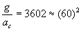 Newton comparó la aceleración centrípeta de la Luna con la aceleración de la gravedad g=9.8 m/s2. La aceleración centrípeta de la Luna es ac=v2/r=4p 2r/P2, con r=3.84·108 m y P=28 días=2.36·106 s, se obtiene ac=2.72·10-3 m/s2. Por consiguiente, Como el radio de la Tierra es 6.37·106 m, y el radio de la órbita de la Luna es 3.84·108 m, tenemos que Por tanto, Las aceleraciones de ambos cuerpos están en razón inversa del cuadrado de las distancias medidas desde el centro de la Tierra.