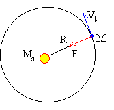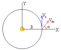 Choque de un meteorito con la Tierra en órbita circular alrededor del SolOrbita circular de la TierraSupondremos que la Tierra describe un órbita circular de radio R=1.49·1011 m alrededor del Sol. Aplicando la ecuación de la dinámica del movimiento circular uniforme, obtenemos la velocidad constante Vt de la Tierra en su movimiento de traslación alrededor del Sol.