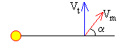 Choque de un meteorito con la Tierra.Establecemos un sistema inercial de referencia con origen en el Sol, la Tierra justamente antes del choque está situada en el eje X a una distancia R del Sol, y se mueve a lo largo del eje Y con velocidad Vt. El meteorito se mueve con velocidad Vm relativa al Sol haciendo un ángulo α con el eje X, tal como se indica en la figura. Aplicando el principio de conservación del momento lineal