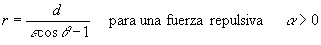 Para una fuerza repulsiva (a>0) la energía total E es siempre positiva por lo que solamente son posibles trayectorias hiperbólicas.