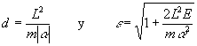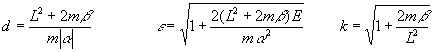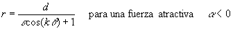 Fuerza inversamente proporcional al cuadrado de la distanciaSi la fuerza que actúa sobre la partícula es central y conservativa inversamente proporcional al cuadrado de la distancia r al centro de fuerzas, el resultado de la integración de (3) es la ecuación de una cónica. Los parámetros d y e están relacionados con la energía y el momento angular del siguiente modo Para una fuerza atractiva (a<0) el tipo de cónica viene determinado por el valor y signo de la energía.