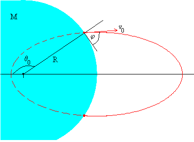 La ecuación de la trayectoria es independiente de la masa m del proyectil. Si la energía del proyectil es negativa E<0 la trayectoria es una elipse. La velocidad de disparo v0 debe ser menor que la velocidad de escape ve