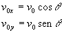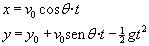 Conocidas las coordenadas del blanco x e y, y la velocidad de disparo v0, se despejará el ángulo de tiro q. Las componentes de la velocidad inicial son Las ecuaciones del movimiento del proyectil son Conocida la posición (x, y) del blanco, tenemos un sistema de dos ecuaciones con dos incógnitas t y q. Eliminando t, y empleando la relación trigonométrica nos queda una ecuación de segundo grado en tanq La ecuación de segundo grado tiene dos soluciones, por tanto, dos ángulos de tiro dan en el blanco Ejemplo El applet nos proporciona los datos de la posición del blanco y la velocidad de disparo.