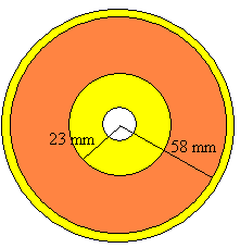 Si medimos los radios r0 y R0, el tiempo T, y la velocidad v podemos despejar el espesor h de la cinta de la primera o de la segunda ecuación. Si la duración de la cinta es de T=46.4 minutos.
