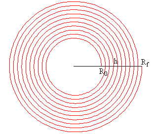 La pista más cercna al eje tiene un radio R0=23 mm y la más alejada Rf=58 mm, h=1.6μm es la separación entre pistas. El número de pistas (vueltas) es, por tanto. El tiempo total que se emplea en leer a velocidad (lineal) constante la totalidad de las pistas del disco es T=72 min. En la figura, por razón de claridad se representa un CD con solo N=10 pistas, separadas h=3.5 mm. Longitud de una espiral de ArquímedesVamos a obtener la longitud s de una espiral de Arquímedes por tres métodos distintos, uno exacto y dos aproximados. El primer método nos permite practicar el cálculo integral en particular, las funciones senh, seno hiperbólico y cosh, coseno hiperbólico.