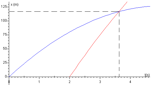 El punto de intersección señala el instante te de encuentro y la posición xe de encuentro.