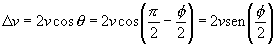 Supongamos ahora que la superficie rígida adopta la forma cilíndrica de radio r. El cambio de velocidad en cada impacto Dv, es la diferencia entre la velocidad final v (en color azul) y la velocidad inicial v (en color rojo). La dirección de dicho cambio de velocidad Dv es radial y apunta hacia el centro de la trayectoria que describe la partícula. Su módulo vale Esta misma expresión se puede deducir en el diagrama de velocidades, calculando el lado Dv del triángulo isósceles de vértice f que forman los vectores velocidad antes y después del impacto.