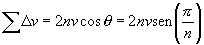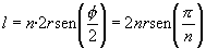 La aceleración media para n impactosLa velocidad de la partícula es constante en los tramos rectos y por tanto, la aceleración es nula. Cuando choca con la superficie rígida la partícula cambia bruscamente la dirección de su velocidad aunque no su módulo y la aceleración en el instante del impacto es infinita. La aceleración media como veremos nos conduce a la fórmula de la aceleración normal. Después de n impactos contra la superficie rígida, la partícula describe una trayectoria que es un polígono regular de n lados. Teniendo en cuenta que el ángulo f =2p/n. El cambio total de velocidad que experimenta la partícula tras n impactos es Calculamos ahora el tiempo que tarda la partícula en describir la trayectoria, un polígono regular de n lados. En el triángulo isósceles formado por un lado y dos radios, calculamos el valor del lado, conociendo el ángulo f del vértice. La longitud del perímetro del polígono regular es La partícula en cada impacto cambia la dirección de su velocidad pero no cambia su módulo. Por tanto, el tiempo que invierte en recorrer la trayectoria poligonal es P=l/v El valor medio del módulo de la aceleración es