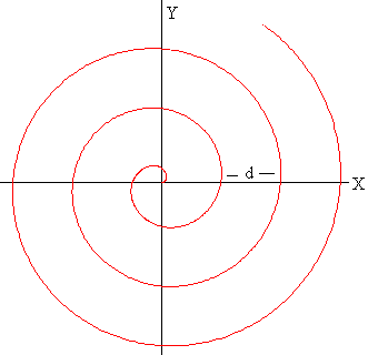 Si la partícula parte del origen en el instante t=0, x=v·t. La distancia r de la partícula al origen en el instante t es El ángulo girado por el sistema no inercial al cabo de un cierto tiempo t es θ=ω·t