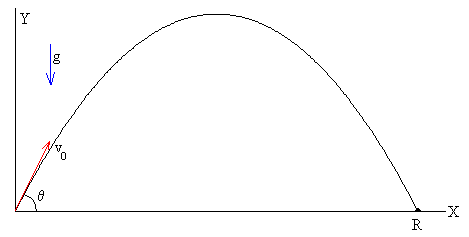 AlcanceLa abscisa R del punto de impacto, denominada alcance se obtiene poniendo y=0 en la ecuación de la trayectoria