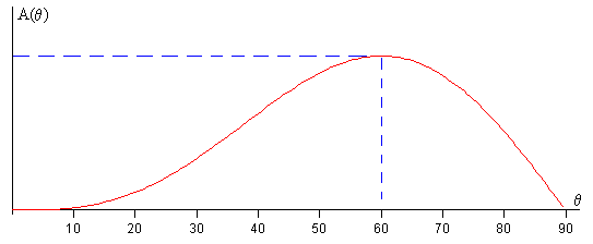 Tiene sentido solamente el signo positivo, que corresponde al ángulo de tiro θ=60º Cuando se dispara un proyectil con un ángulo de tiro θ=60º, el área encerrada por la trayectoria y el eje horizontal X es máxima.