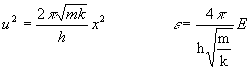 DescripciónLa ecuación de Schrödinger unidimensional e independiente del tiempo es La energía potencial de un oscilador armónico es Ep=kx2/2, donde k es la constante elástica y m la masa de la partícula. Tomando una escala de energías y distancias de la forma La ecuación de Schrödinger se transforma en otra más simple Los niveles de energía vienen dados por e =1,3,5,7... (2n+1) Y las funciones de onda F (u)=N H(u)exp(-u2/2) Siendo H(u) los polinomios de Hermite. Un oscilador armónico de constante k y masa m, tiene una frecuencia propia de oscilación w0 Deshaciendo el cambio de variable los niveles de energía E de un oscilador armónico serán, por tanto