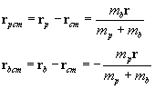 dispersion4.gif (2291 bytes) Si r=rp-rb es la posición del proyectil respecto del blanco, la posición de cada una de las partículas respecto del c.m. es