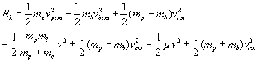 La energía cinética del proyectil en el S.R. del c.m. vale