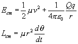 Por tanto, la energía y el momento angular en el S.R. del c.m. son