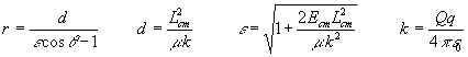 Las ecuaciones del movimiento del proyectil respecto del blanco se escriben de forma análoga a las de una partícula bajo la acción de un centro fijo de fuerzas, basta sustituir la masa m por la masa reducida m , la energía E y el momento angular L, por sus valores análogos Ecm y Lcm medidos en el S.R. del c.m.