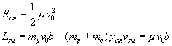 Calculemos los valores de Ecm y Lcm para una partícula proyectil con velocidad v0 y parámetro de impacto b, que se lanza contra un blanco inicialmente en reposo.
