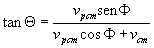 Sustituyendo en la última fórmula la velocidad del centro de masa vcm, y la velocidad final vpcm del proyectil medida en el S.R. del c.m, obtenemos la relación entre los ángulos de dispersión medidos en el S.R. del Laboratorio y en el SR del c.m.