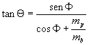 El ángulo de dispersión, es decir, el ángulo que forma la dirección del proyectil antes y después del proceso de dispersión, se calcula con la fórmula ya deducida en la que se ha sustituido la masa m por la masa reducida m .