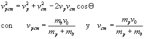 En el caso especial de que mp=mb tenemos que vp/v0=cos Q.