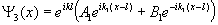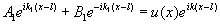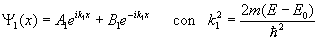 El punto x en la región 3 se corresponde con el punto x-l en la región 1, de modo que u(x)=u(x-l). Despejando u(x) e introduciendo dicha expresión en la función de onda en la tercera región. Escribiremos ahora las condiciones de continuidad de la función de onda y de su derivada primera en los puntos x=0, y x=a.