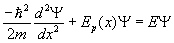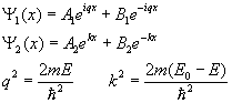 El pozo de potencialLas soluciones de la ecuación de Schrödinger en las regiones (1) y (2) son respectivamente, véase el escalón de potencial (E<E0). Y 2(x) debe tender a cero cuando x se hace grande, para ello A2 tiene que ser cero.Las condiciones de continuidad de la función de onda Y(x) y su derivada primera en la frontera x=a entre las dos regiones de distinto potencial, constituyen un par de ecuaciones que relacionan A1 y B1 con B2. Este último parámetro, determina la escala vertical de la función de onda Y(x), y se puede obtener a partir de la condición de normalización La simetría de la función potencial Ep(x) hace que los estados de energía de la partícula puedan ser