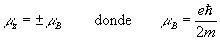 DescripciónSe postula la existencia de un momento angular intrínseco del electrón llamado espín S . Como el electrón es una partícula cargada, el espín del electrón debe dar lugar a un momento magnético µ intrínseco o de espín. La relación que existente entre el vector momento magnético y el espín es donde g se denomina razón giromagnética del electrón, su valor experimental es aproximadamente 2.