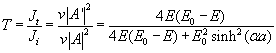 Para E<E0, T es menor que la unidad. Sin embargo, para E>E0, T alcanza el valor máximo, para valores concretos del cociente E/E0. Resolviendo de nuevo, la ecuación de Schrödinger en las tres regiones