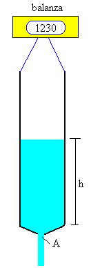 Se pulsa el botón titulado Empieza Una balanza electrónica situada en la parte superior del applet mide solamente el peso de arena, se ha descontado el peso de las partes que no cambian (botella, abertura, etc.). Se observa la salida de la arena a través del orificio, comprobamos que el flujo es constante e independiente de la altura inicial de la arena en el recipiente. En la parte derecha, observamos la representación gráfica de la masa m de la arena en función del tiempo t. Medimos la pendiente de la recta –f en g/s. Calculamos el área de la abertura circular A=π·d2/4, siendo d el diámetro en mm. Los pares de datos: área A y flujo f se guardan el control área de texto situado a la izquierda del applet. Pulsamos el botón titulado Inicio, cambiamos el diámetro del orificio y pulsamos el botón Empieza y así, sucesivamente Cuando tenemos suficientes datos, se pulsa el botón titulado Gráfica, para representar