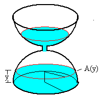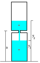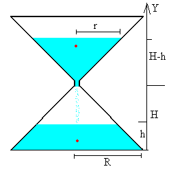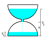 DescripciónEn la figura, se muestra un reloj de arena en un instante t. Sea y2 la posición de la superficie libre de la arena en la porción superior e y1 la posición en la porción inferior. La posición del cuello cilíndrico que une ambas porciones es a. Sea A(y) el área de la sección trasversal del reloj de arena en la posición y, y ρ la densidad de la arena.