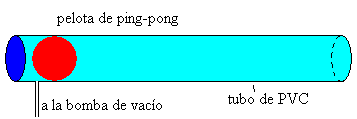Disponemos de un tubo de PVC de longitud L y sección A, sellado por ambos extremos, que tiene en su interior una pelota de ping-pong. El diámetro del tubo es un poco mayor que el diámetro de la pelota, de modo que ésta pueda moverse a lo largo del tubo.