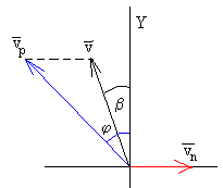 El módulo v del vector resultante y el ángulo β que forma con la dirección radial Y es