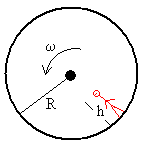 Un cuerpo se lanza hacia "arriba" desde el “suelo” de la nave espacial en movimiento de rotaciónSea una nave cilíndrica de radio R, que gira alrededor de su eje con velocidad angular constante ω.