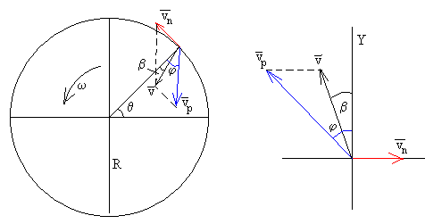 Sistema de Referencia Inercial Desde el punto de vista del observador inercial, la velocidad del objeto v es la suma vectorial v=vp+vn donde vn es la velocidad del dispositivo, cuya dirección es tangencial y cuyo módulo es vn=ωR