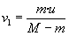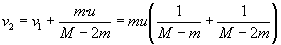 El cohete se moverá con velocidad constante v2 en el intervalo de tiempo Dt -2Dt. La fracción m del combustible expulsado se moverá con velocidad constante v1-u.