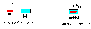 Midiendo el ángulo q obtenemos vB y de la conservación del momento lineal obtenemos la velocidad de la bala u.