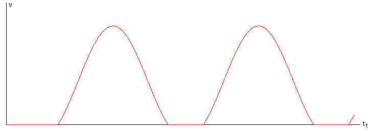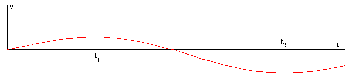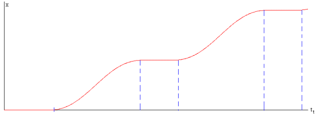 En la figura, se muestra la velocidad de la caja en función del tiempo. La raíz buscada t está entre el instante t1 para el que la velocidad es máxima y el instante t2 para el cual la velocidad es mínima. El máximo y el mínimo son las raíces de la ecuación