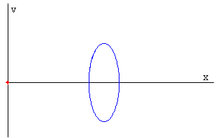 El valor mínimo de F= μsMg/2 Si F< μsMg/2, la caja permanece en reposo y el operario describe un M.A.S. de amplitud A y frecuencia angular ω. La posición de equilibrio (la fuerza sobre le operario es nula) se encuentra en d+F/(mω2) La figura muestra la trayectoria del operario en el espacio de las fases x-v, la caja está en reposo en el origen. El operario alcanza una velocidad máxima cuando pasa por la posición de equilibrio y una velocidad mínima en d y en d+2F/(mω2).